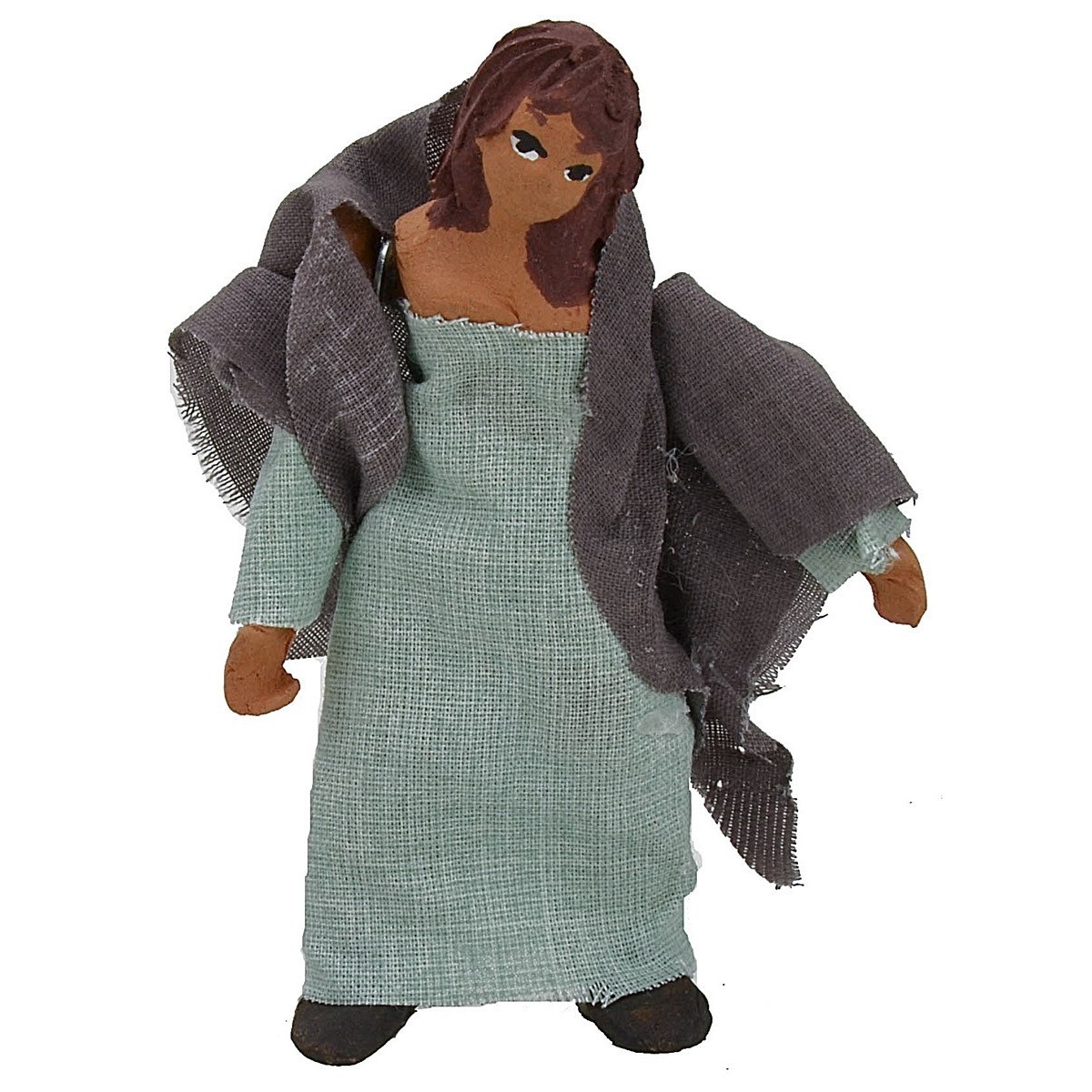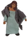 Series 10-11 cm jointed terracotta woman dressed in fabric clothes. The statue is in the standing position with one arm predisposed to move up/down and the bust jointed, it can be used fixed and placed in the desired position. Given its characteristics, it is ideal for creating movements for the DIY nativity scene such as: the woman who beats the clothes, a peasant woman who feeds the hens, a seller, etc. The item is made entirely by hand, therefore, the colors may vary from the photo.