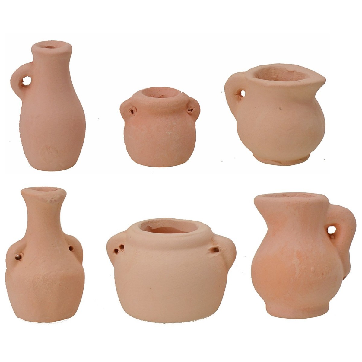Set 6 anfore in terracotta assortite in varie forme per presepe e modellismo.