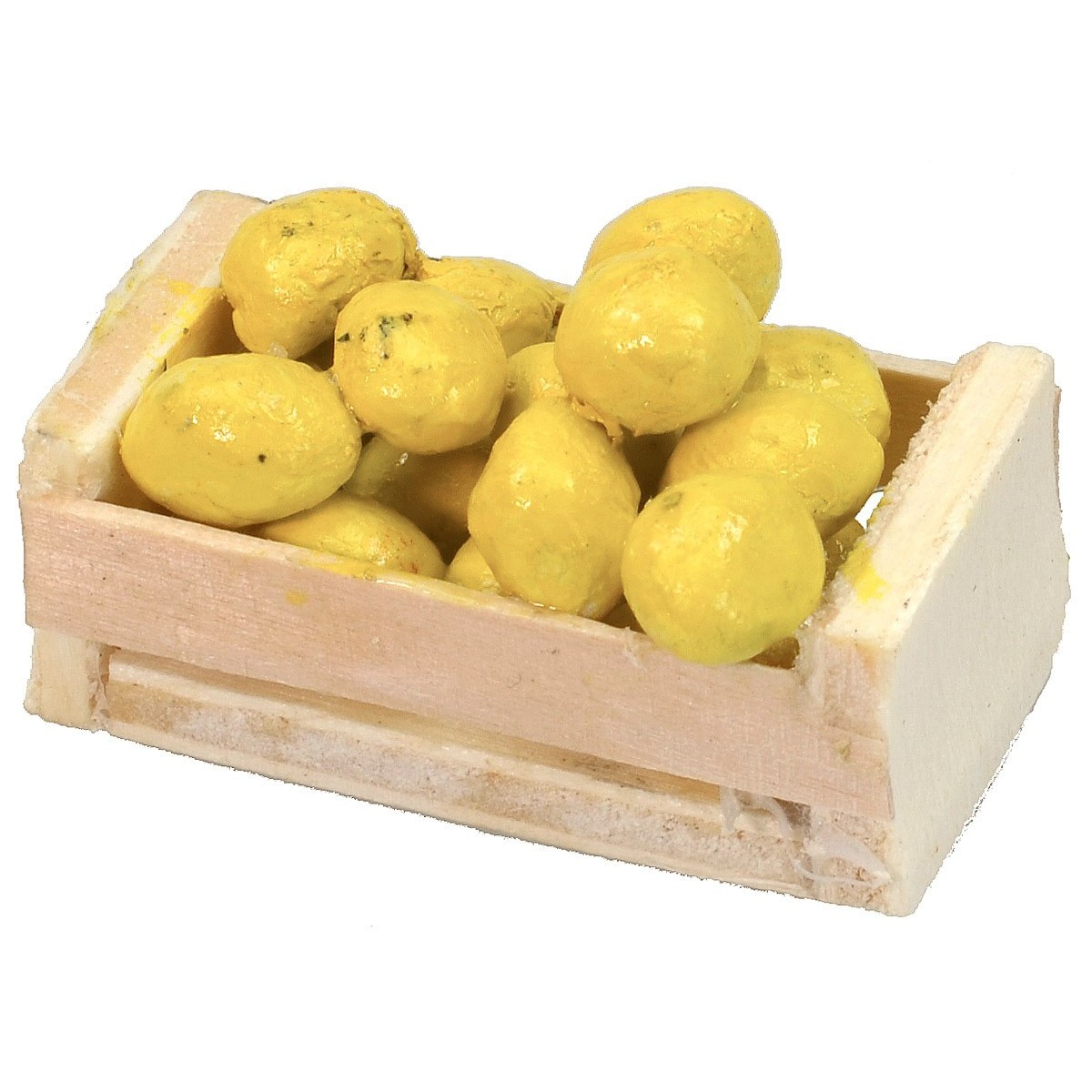 Light wood box with lemons, recommended for nativity statues 12-14 cm high.