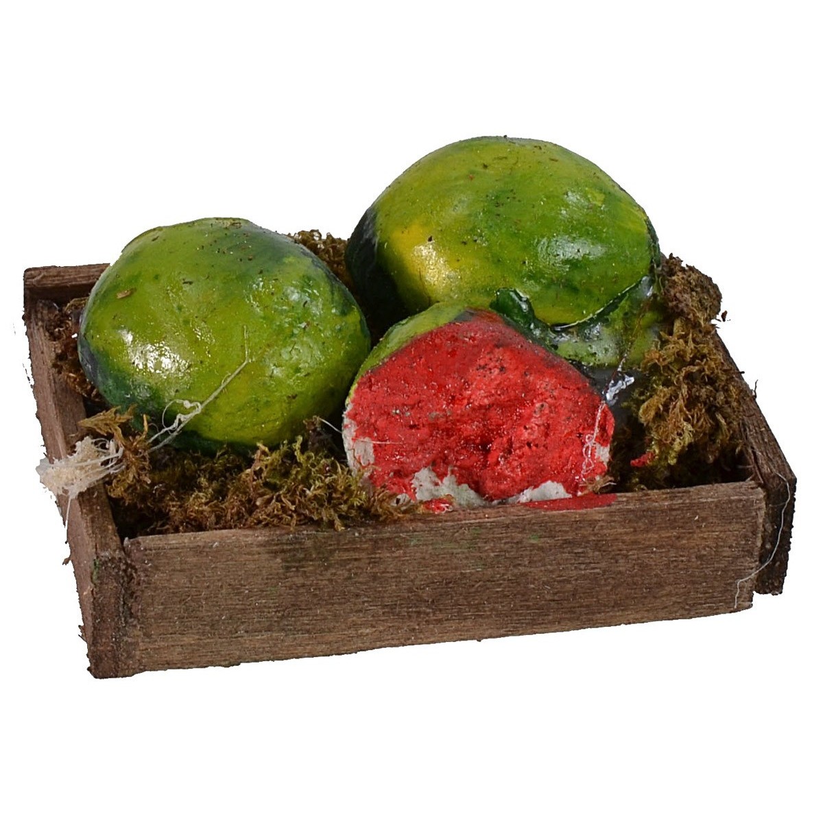 Dark wooden box with three terracotta watermelons. It is recommended for statues with a height of 10-12 cm.