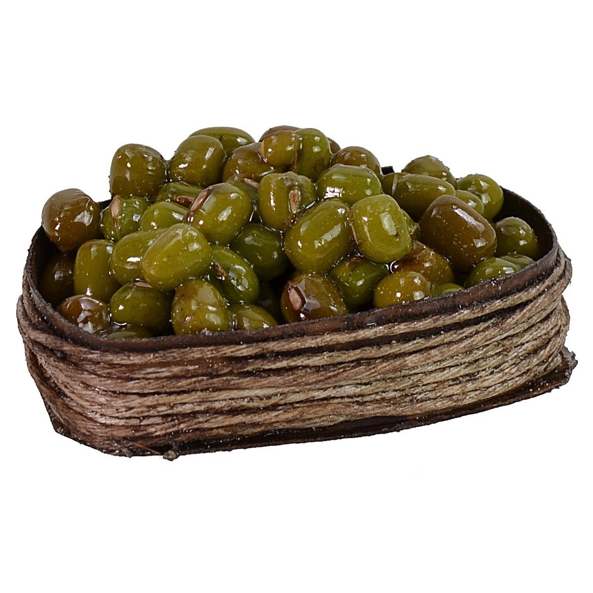 Basket of wood and rope with olives in terracotta, recommended for statues of 12-15 cm in height.