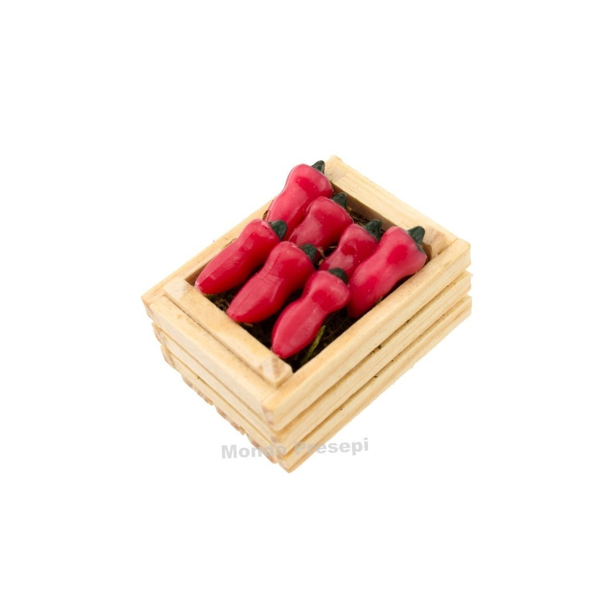 Red pepper box in wood with two strips, with handles.