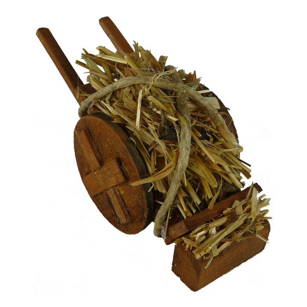 Carretto per Presepe in legno colmo di paglia con due grandi ruote laterali. Il carretto può esser posizionato in orizzontale vicino ad una statua per simulare uno spostamento o in verticale appoggiato a terra. Prodotto interamente in Italia da sapienti mani artigiane ed adatto per statue di altezza 10-11-12 cm. L'articolo risulta ben proporzionato, rifinito nei dettagli e potrà portare un tocco di originalità al tuo Presepe.