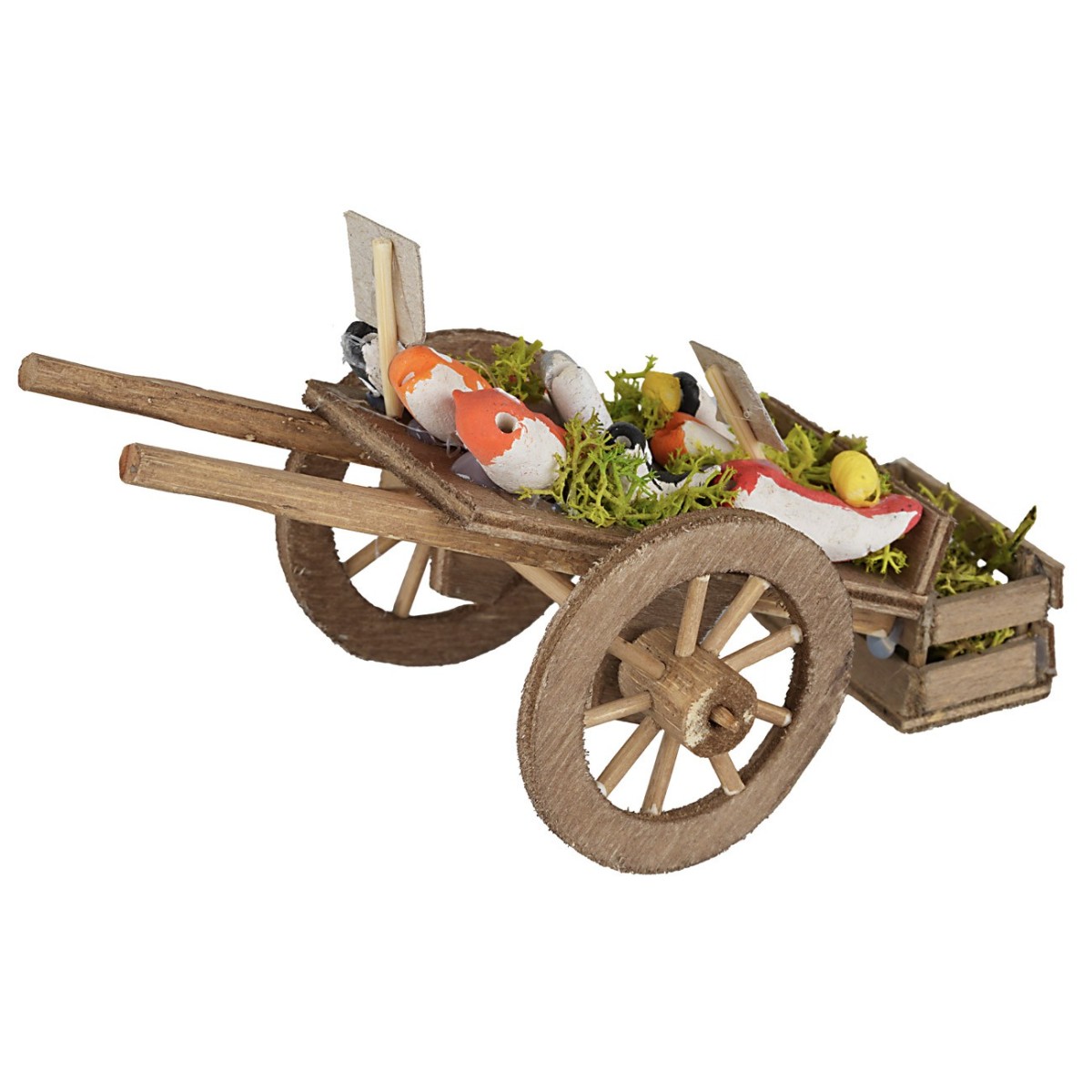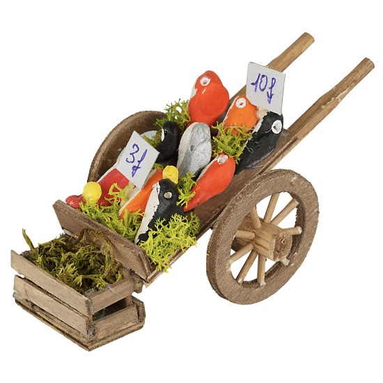 Wooden cart for fishmonger, ideal for figurines with a height between 10 and 12 cm. Please note that, being a completely handmade product, it may have slight variations from the photo.