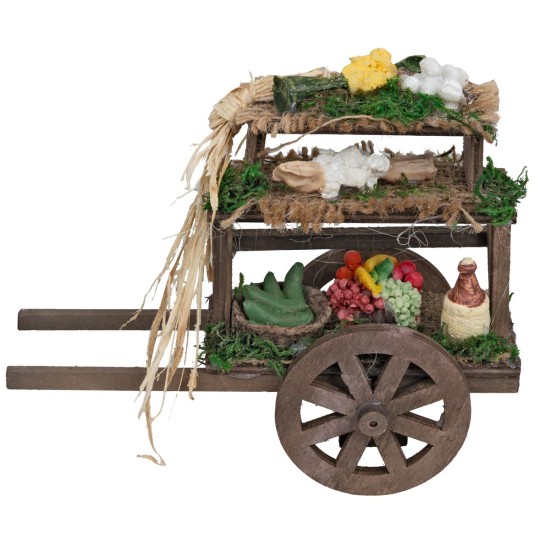 Wooden cart with fruits and vegetables recommended for figurines of height 10 cm.