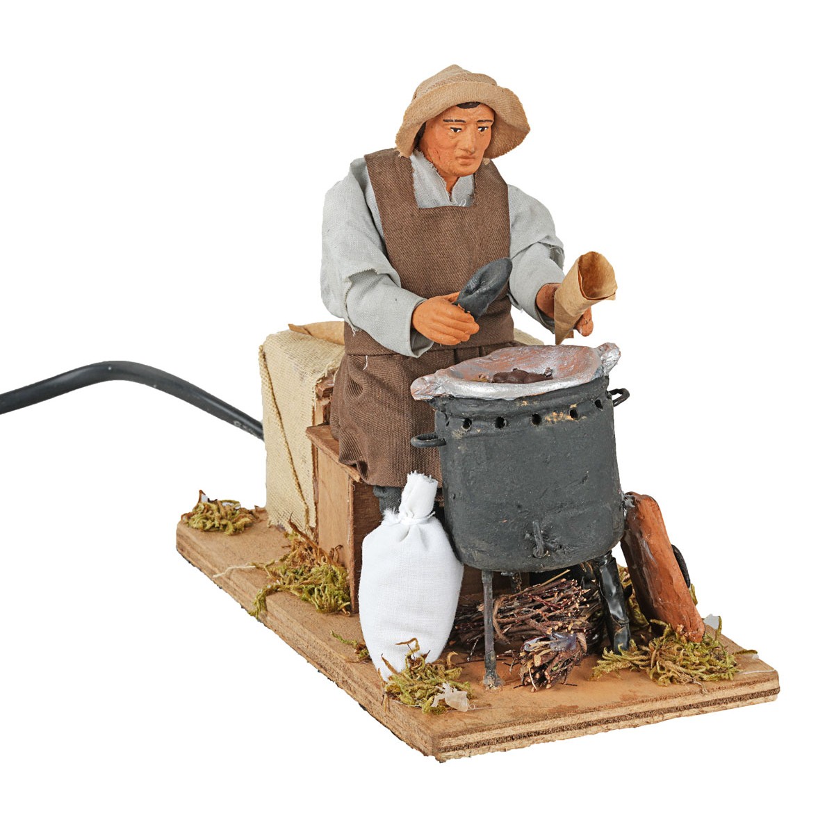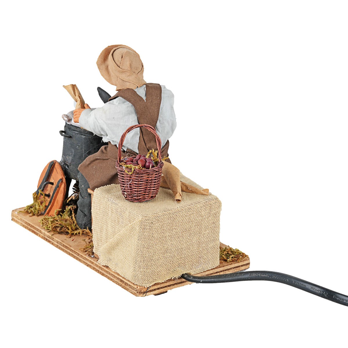 The figurine is made of hand-painted terracotta and finished with carefully sewn fabric clothes. The movement operates on current. The details of colors, clothes, and small parts may vary as these are unique handmade products made in Italy.