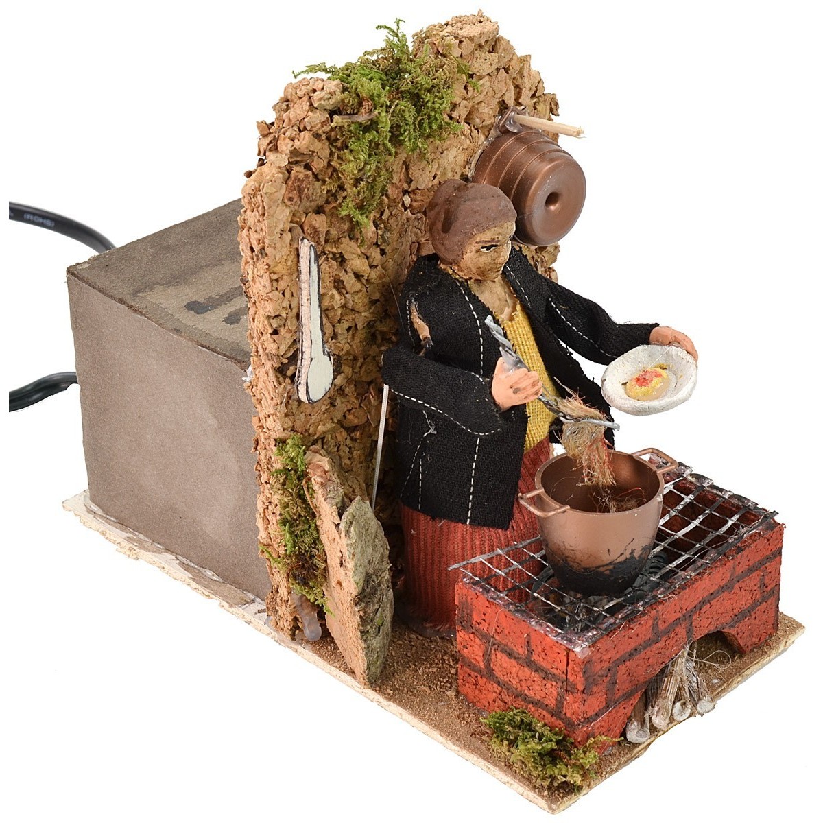 Cuoca 8 cm in movimento, muove il braccio con cui impugna l'utensile per impiattare il cibo; la scena è arricchita da utensili da cucina e una brace funzionante a corrente. La statua presenta un viso di terracotta molto espressivo ed è accuratamente vestita con abiti in tessuto, ogni pezzo è realizzato interamente a mano da artigiani italiani pertanto i colori e gli abiti potrebbero variare. L'articolo è funzionante a corrente.