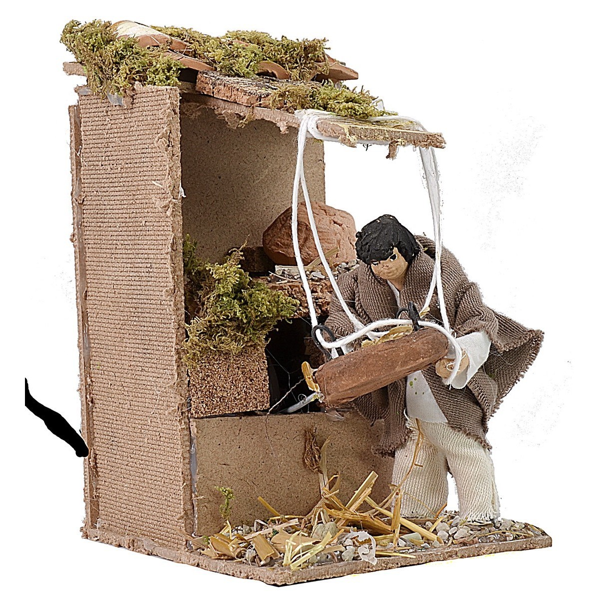 Moving sorting machine that moves the torso to sift, made of terracotta by skilled Italian artisan hands and running on electricity. The scene is treated in detail, and full of natural details such as stones and moss or roof tiles.