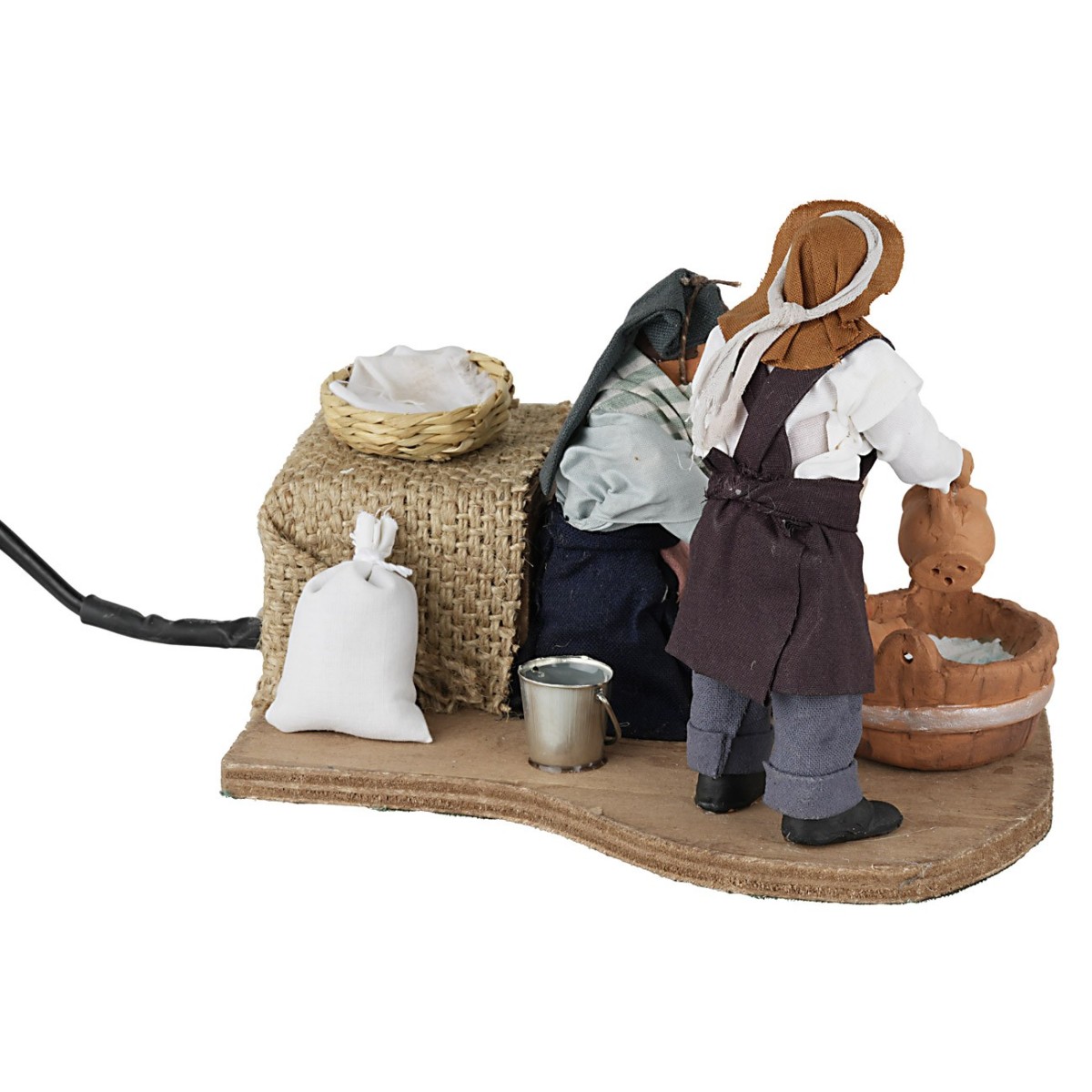 Scene with 12 cm figurines depicting a bath thanks to the arm movement with the sponge. The figurine is made of terracotta and hand-painted in Italy by skilled artisans with well-finished fabric clothes. The figure for the classic and/or Neapolitan Nativity scene is made of terracotta and is powered by electricity. Please note that the product details may vary as it is handcrafted.