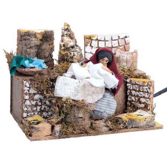 Animated laundress series 12-13 cm in terracotta, powered by electricity.
