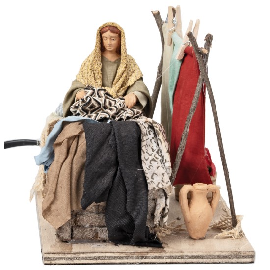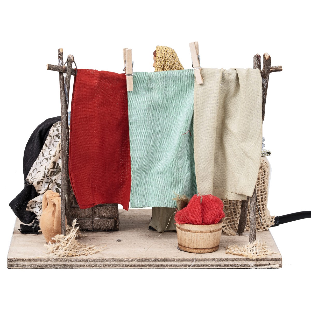 Woman hanging clothes in terracotta 12 cm series in motion.