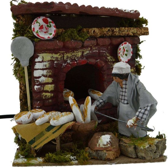 Baker 10 cm in terracotta with fabric clothes that bake the bread in the oven with a fire effect lamp, all running on electricity.