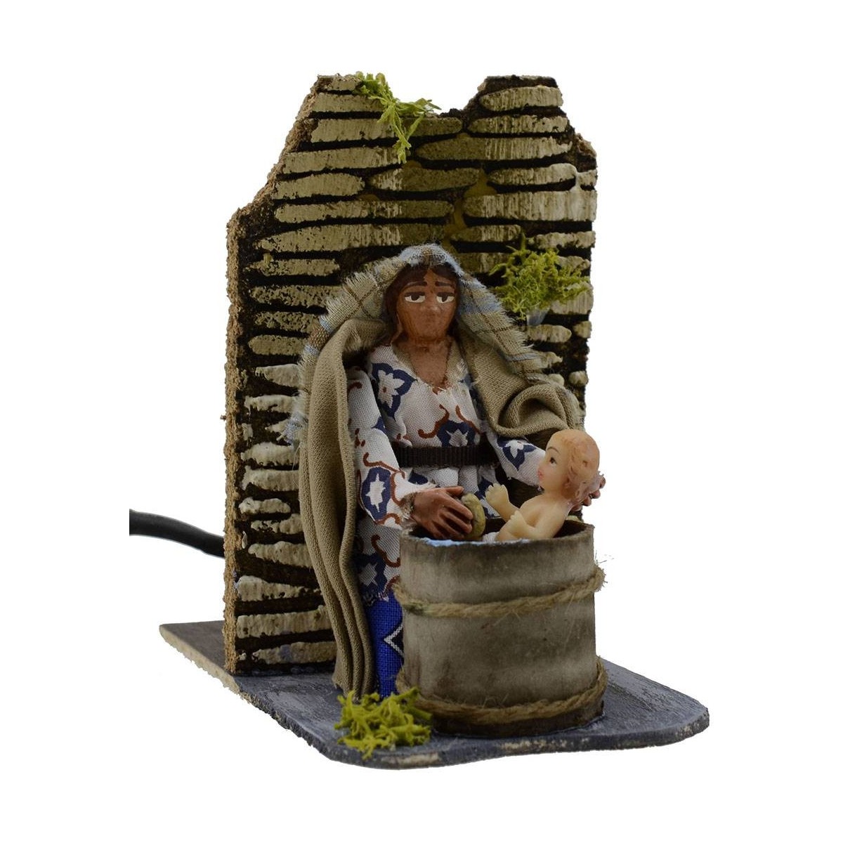 Moving mother bathing the child, terracotta statues dressed in fabric, height 8 cm.