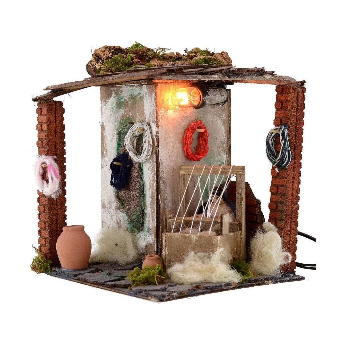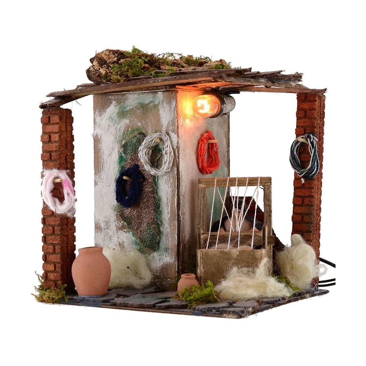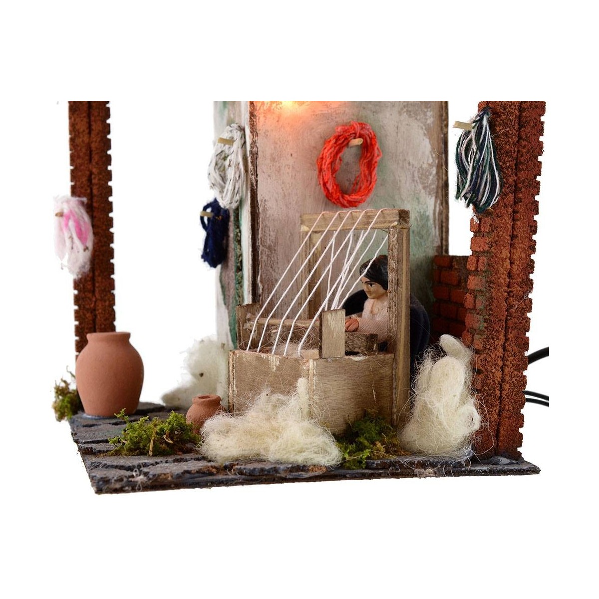 Tessitrice 10 cm in motion, illuminated with running light at current. The statue is carried out in terracotta dressed in fabric.