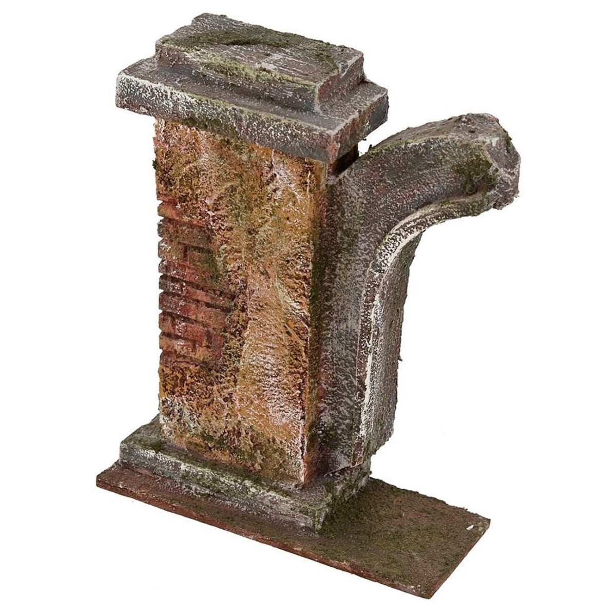 Rudere composto da colonna con mattoni a vista rosse ed un accenno di arco in pietra a destra, questa ambientazione creata da artigiani italiani per il Presepe classico popolare in polistirene e legno, è consigliato per statue di altezza 8-10 cm. Questo pezzo può esser utilizzato per personalizzare e decorare gli ambienti esterni del vostro Presepe.