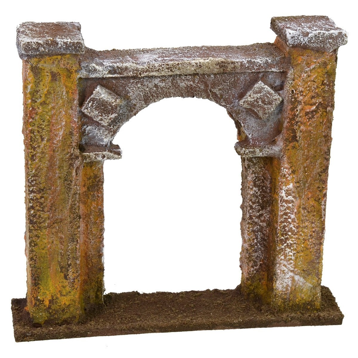Porta d'ingresso ad arco della città sorretta da due colonne laterali. Questa ambientazione creata da artigiani italiani per il Presepe classico popolare in Polistirene e sughero, risulta adatta per statue di altezza 6 cm. L'articolo può esser utilizzato per personalizzare e decorare gli ambienti esterni del vostro Presepe.