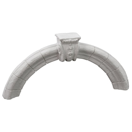 Arco con capitello e stemma in bassorilievo da fissare ad una parete muraria per docorare, ad esempio, un ingresso. L'articolo è realizzato artigianalmente in Italia utilizzando il gesso, è ben rifinito nei dettagli e contribuirà a donare un tocco di originalità e maestosità al Presepe.