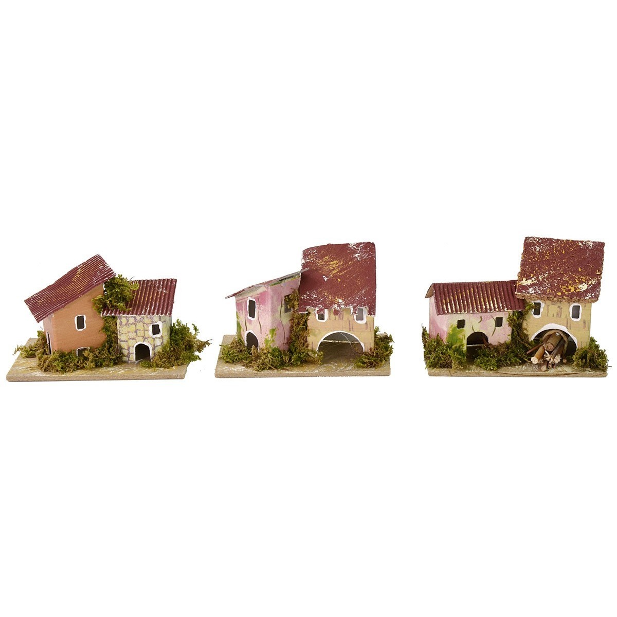 Set consisting of 6 houses of different sizes, ideal for creating scripts in the distance. The article is produced in Italy by skilled artisan hands in cork and moss wood.
