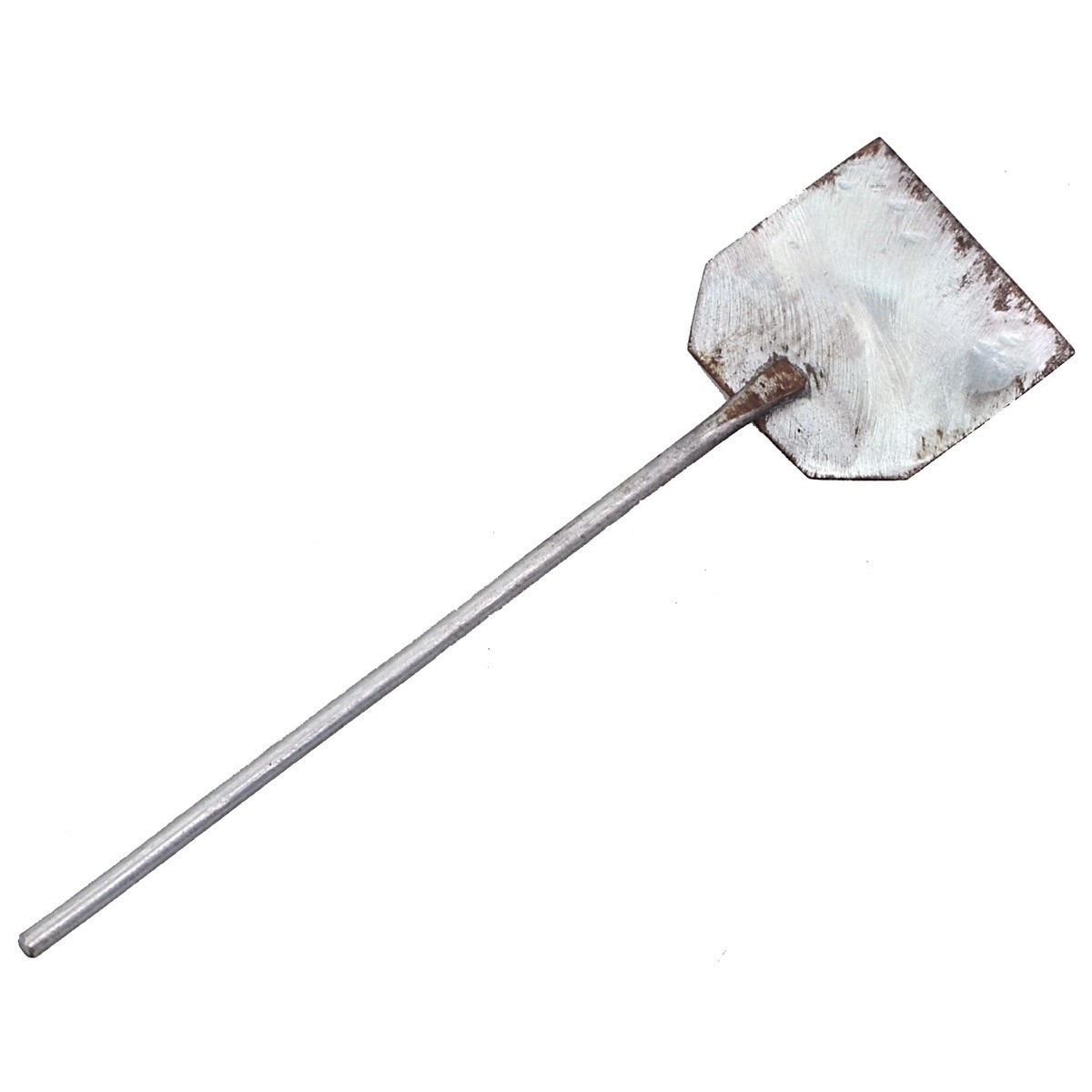 Attrezzo da fornaio in metallo arrugginito, essendo un prodotto interamente artigianale le misure e i colori possono variare leggermente rispetto alla foto, attrezzo consigliato per statue di altezza 12-14 cm.