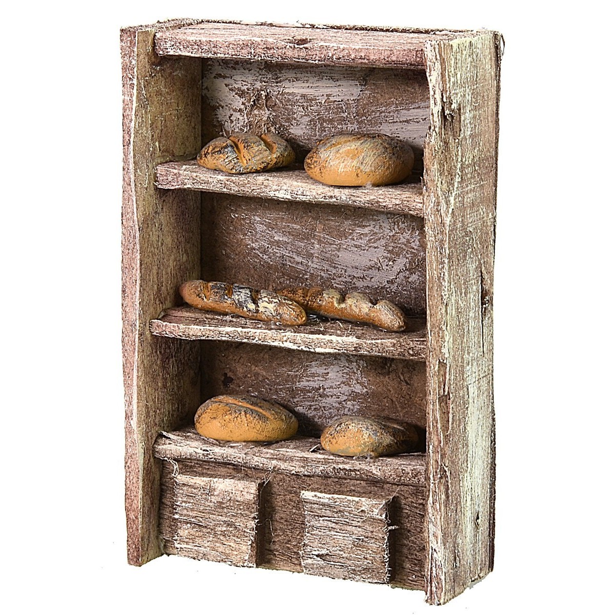 Shelf made of wood with bread, recommended for 10 cm high statues, ideal for making workshops or home settings.