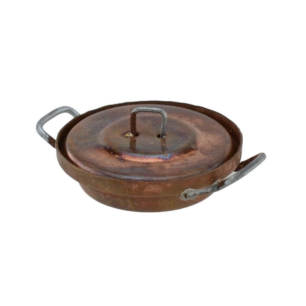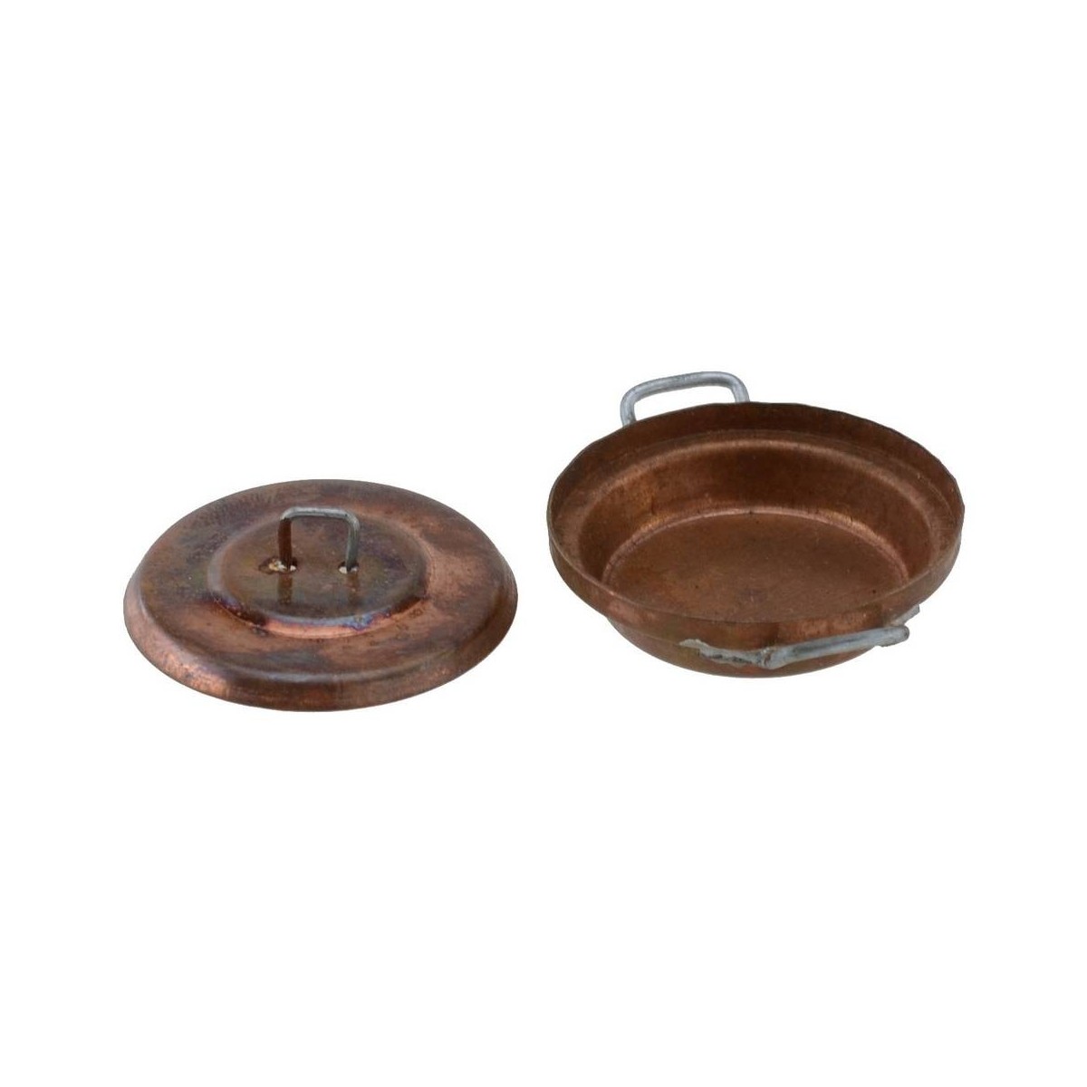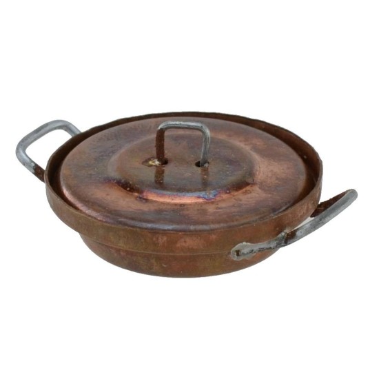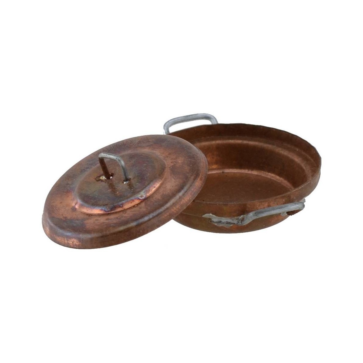 Copper pan with lid, a well-finished miniature accessory essential for decorating the scenography of your nativity scene.