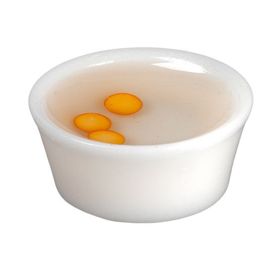Round bowl with dough mixture inside and three egg yolks, recommended for figurines with a height of 12-15 cm.