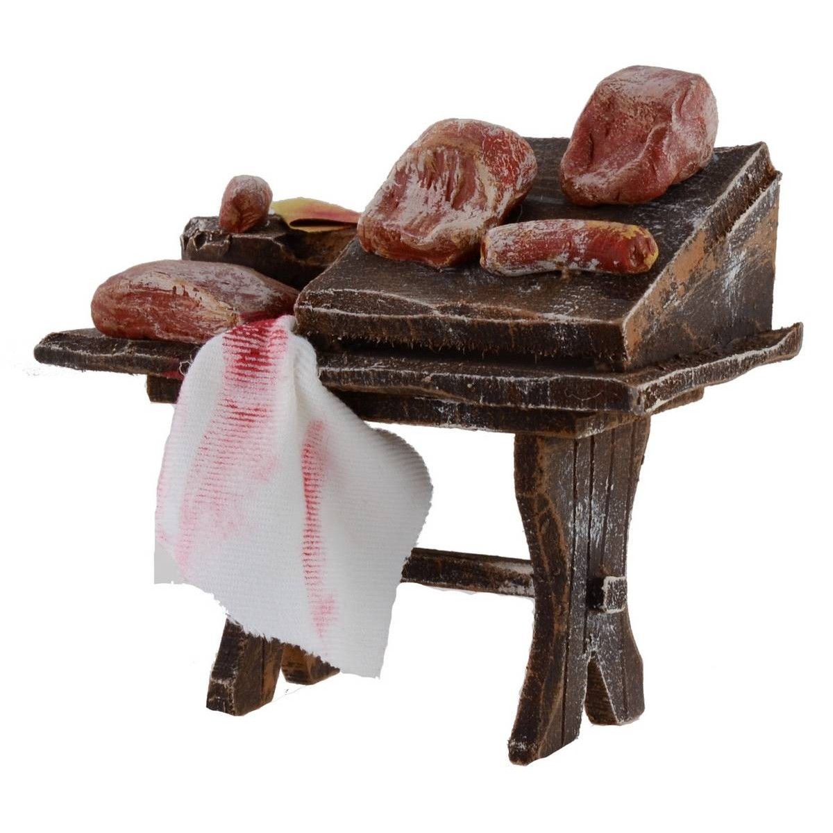 Wooden bench with meat and salumi cm 8,5x5x8, 5 for statues from 12-14 cm