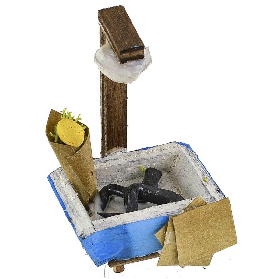 Eel tank handcrafted in wood, ideal for enriching the scenography of the nativity scene. The article is recommended for 6-6.5 cm statues.