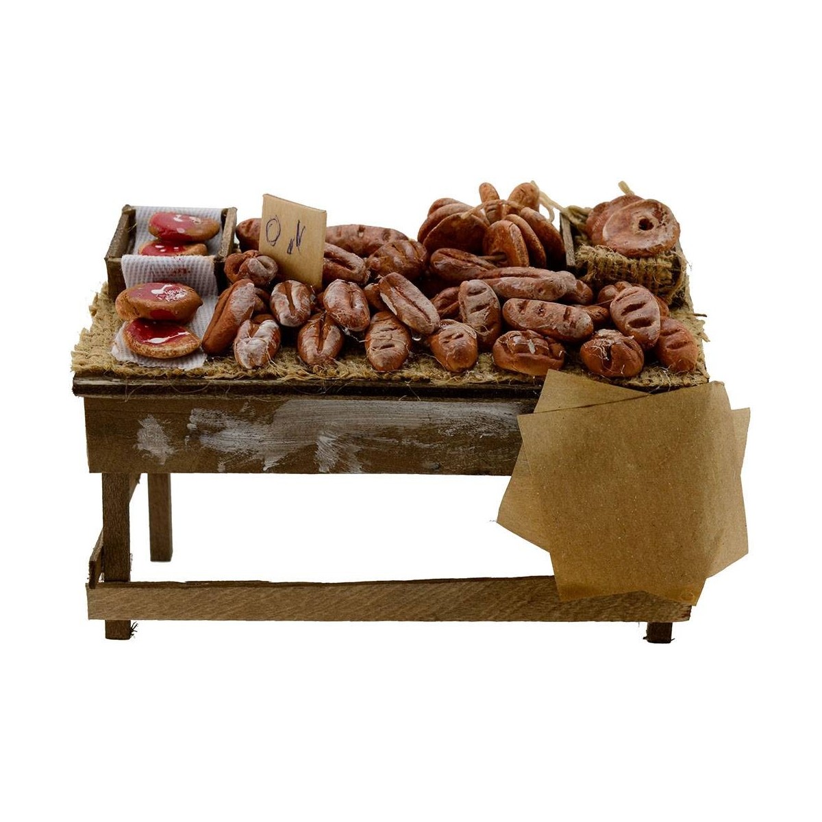 Wooden bench with bread and pizzas 13x7x7,5h.