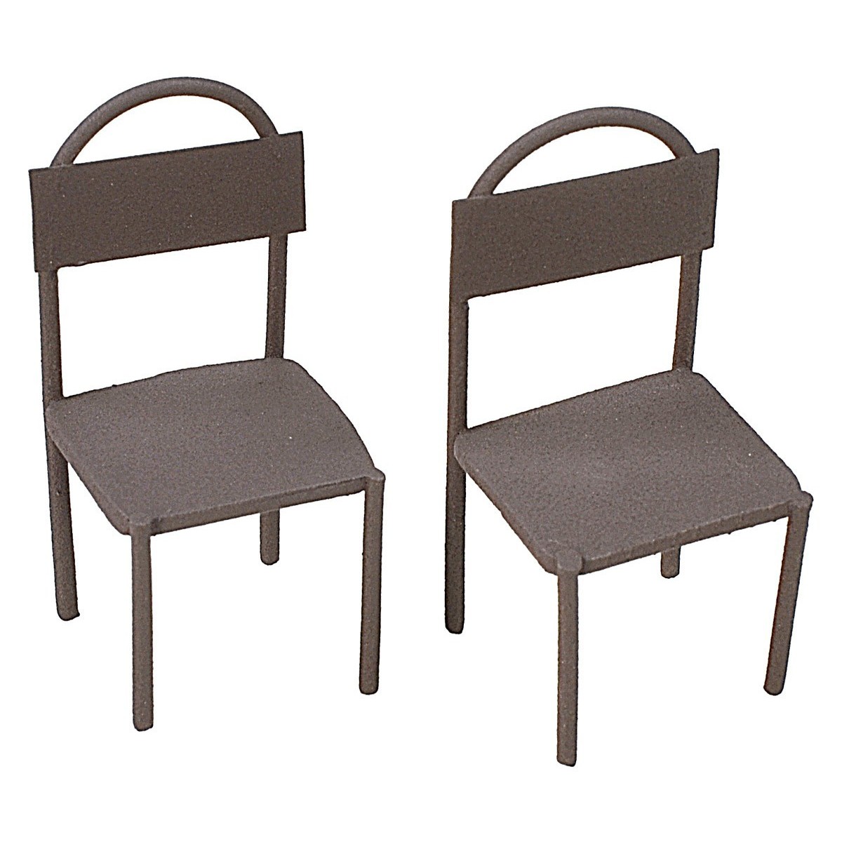 Tavolo e sedie in metallo grigio, consigliati per statue altezza 8 cm ed ideali per la creazione di ambienti casalinghi.