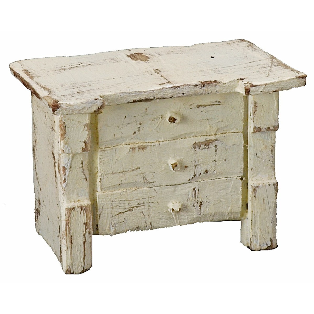 Cassettiera in legno bianco ideale per completare camere di Presepi fai da te o case di bambole. L'articolo è stato prodotto da artigiani italiani ed è consigliato per statue di altezza 6 cm. Nella categoria dedicata alle MINUTERIE sono disponibili tanti accessori per poter personalizzare questo oggetto e nei prodotti correlati sotto la tabella sono presenti altri complementi d'arredo della stessa serie da abbinare poter completare le ambientazioni.