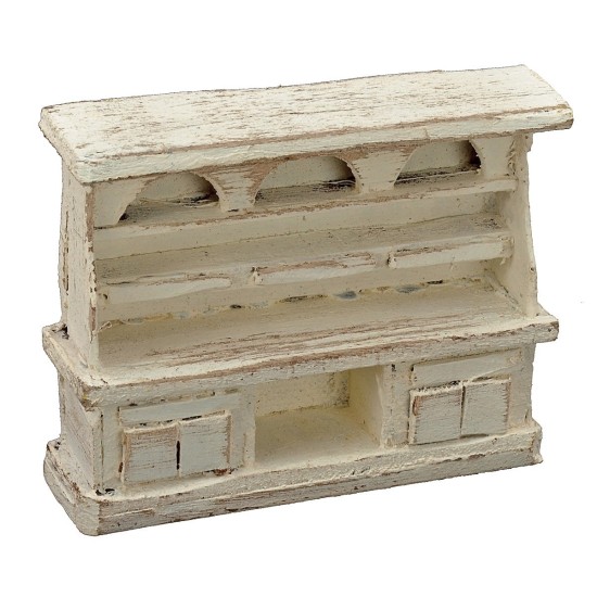 Grande credenza bianca di legno composta nella parte inferiore da vani chiusi con due antine, cassettini e al centro uno spazio aperto da poter completare, nella parte superiore cassetti e scaffali a vista da poter decorare con le MINUTERIE presenti nel nostro negozio. L'articolo è stato prodotto da artigiani italiani ed è consigliato per statue di altezza 6 cm. Nei prodotti correlati sotto la tabella sono presenti altri complementi d'arredo della stessa serie per poter completare le vostre ambientazioni.