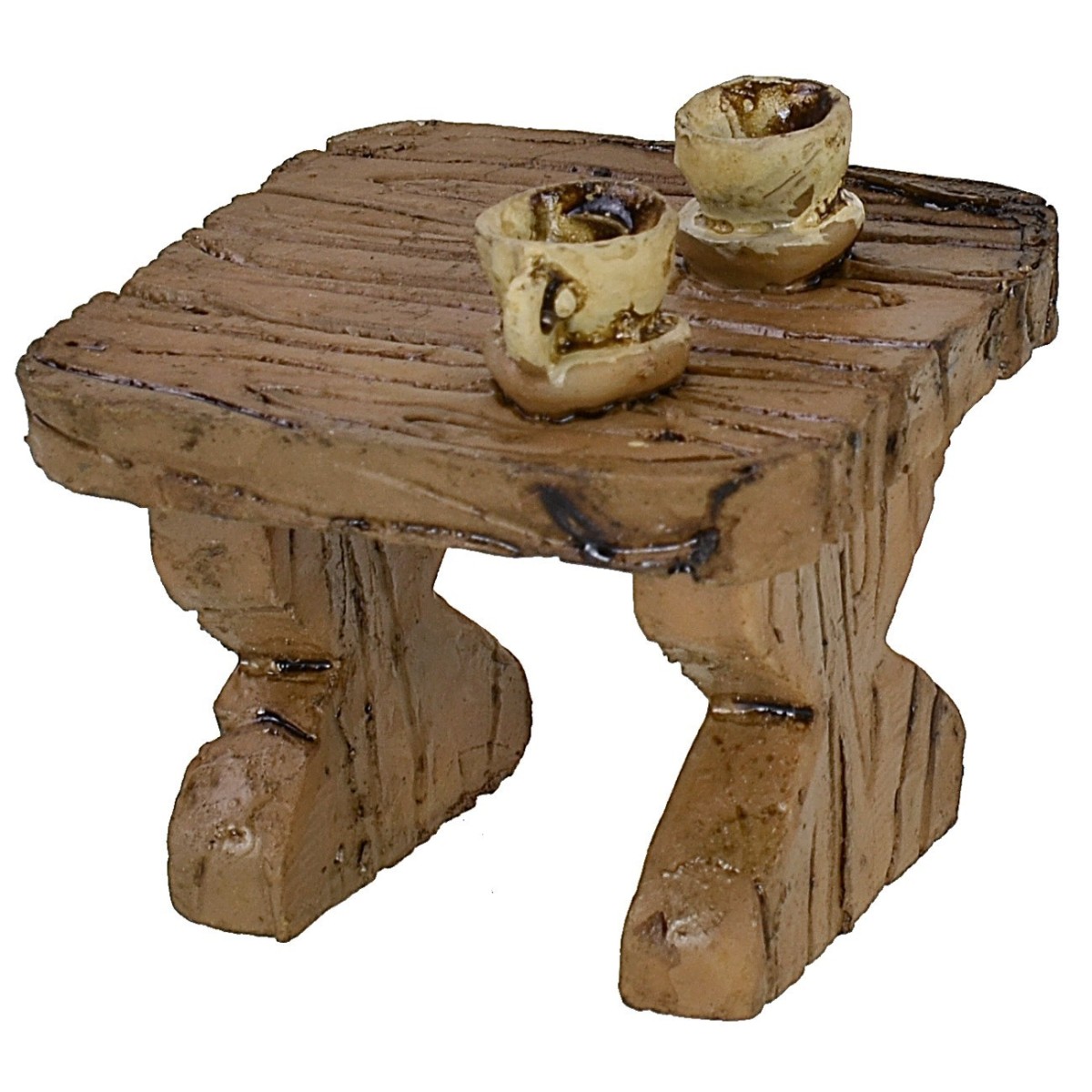 Wood-effect resin table, two cups are placed on the top. The product is recommended for 6-6.5 cm tall figurines.