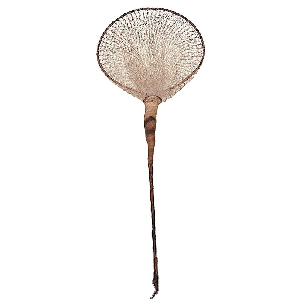 Landing net for fisherman with wooden handle and round net, recommended for statues 12-15 cm high.
