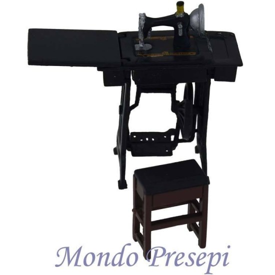 Desk with sewing machine and tools for the seamstress.