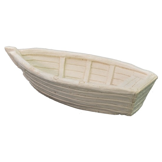 Imbarcazione in gesso ceramico realizzata a mano, ideale per arricchire un paesaggio marino. Consigliata per statue di altezza 10-12 cm.