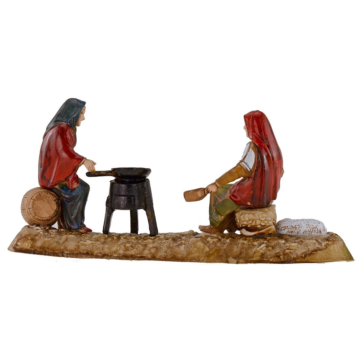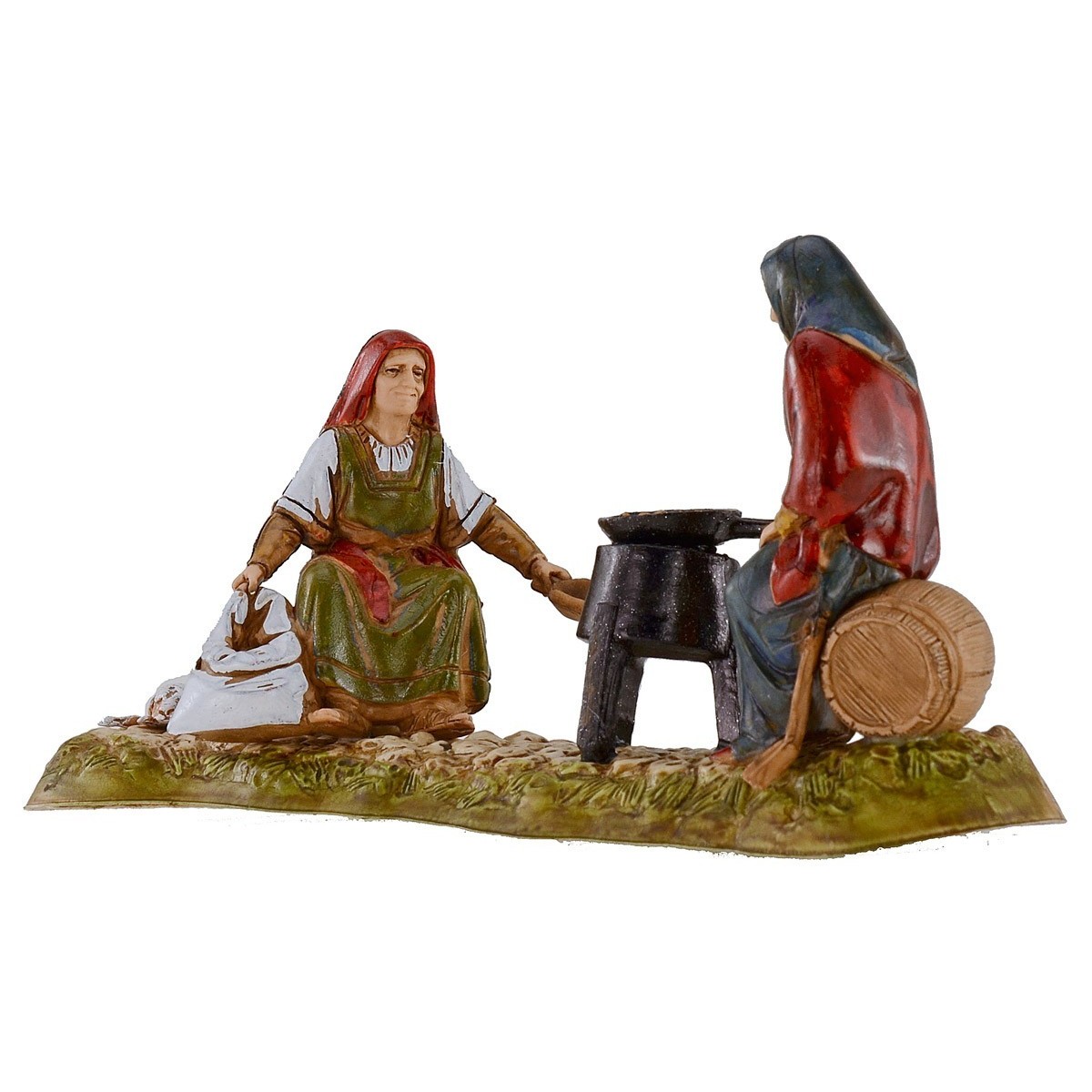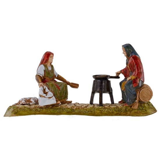 Gruppo donne sedute che arrostiscono le castagne cm 10 Landi Moranduzzo, precisiamo che la serie 10 cm ha un'altezza reale di circa 8,5-9 cm.
