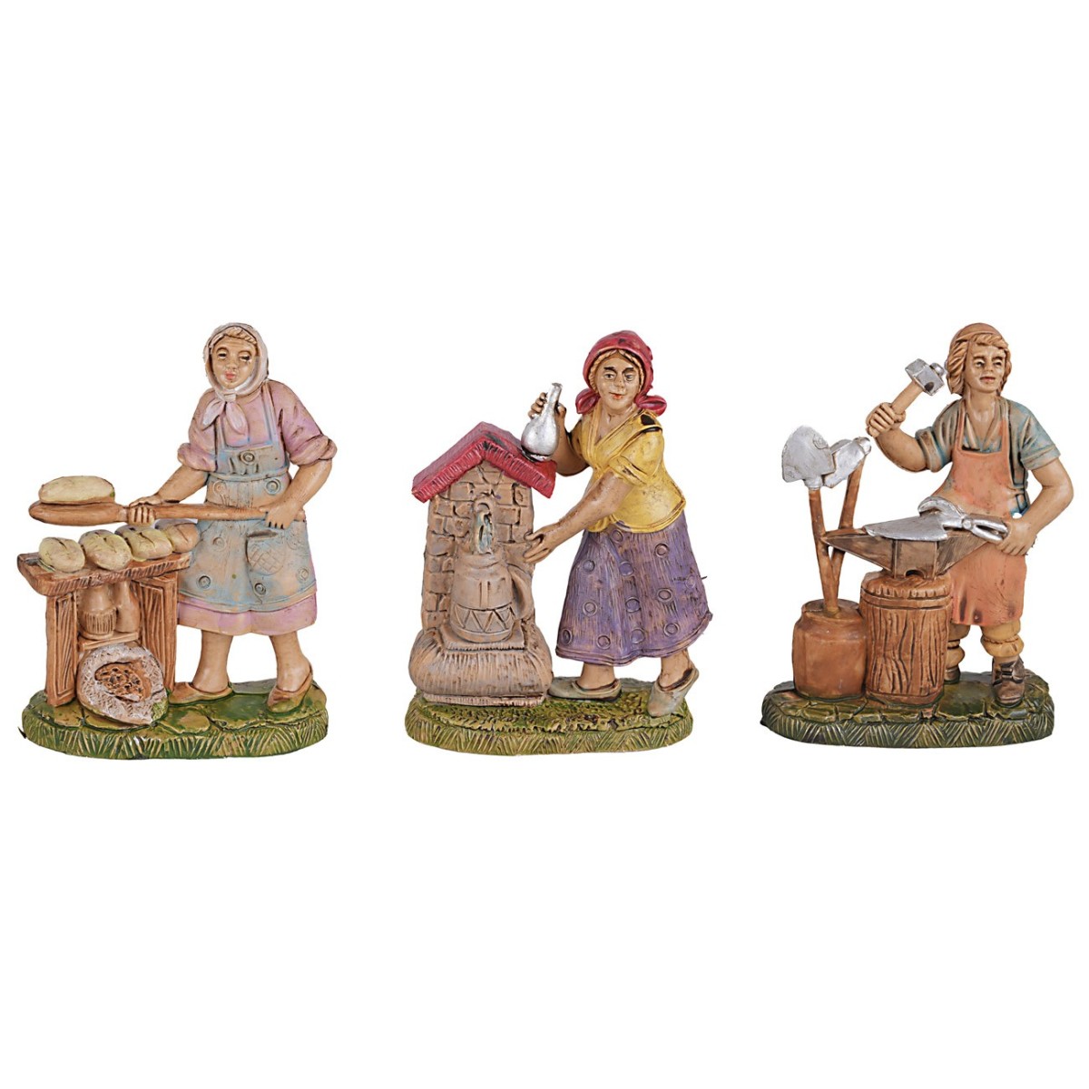 Set of Artisans performing their work, series 10 cm. The figurines were produced in Italy in PVC, ideal for completing nativity scenes.
