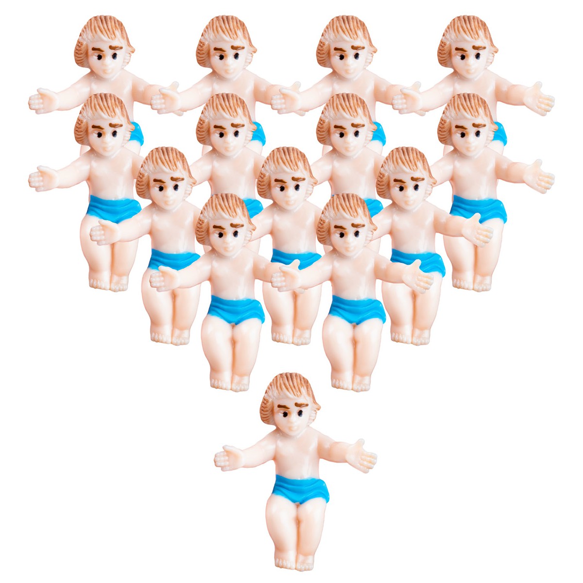 Set of 12 Baby Jesus with open arms, with a simple blue cloth, in a position suitable to be placed in the crib.