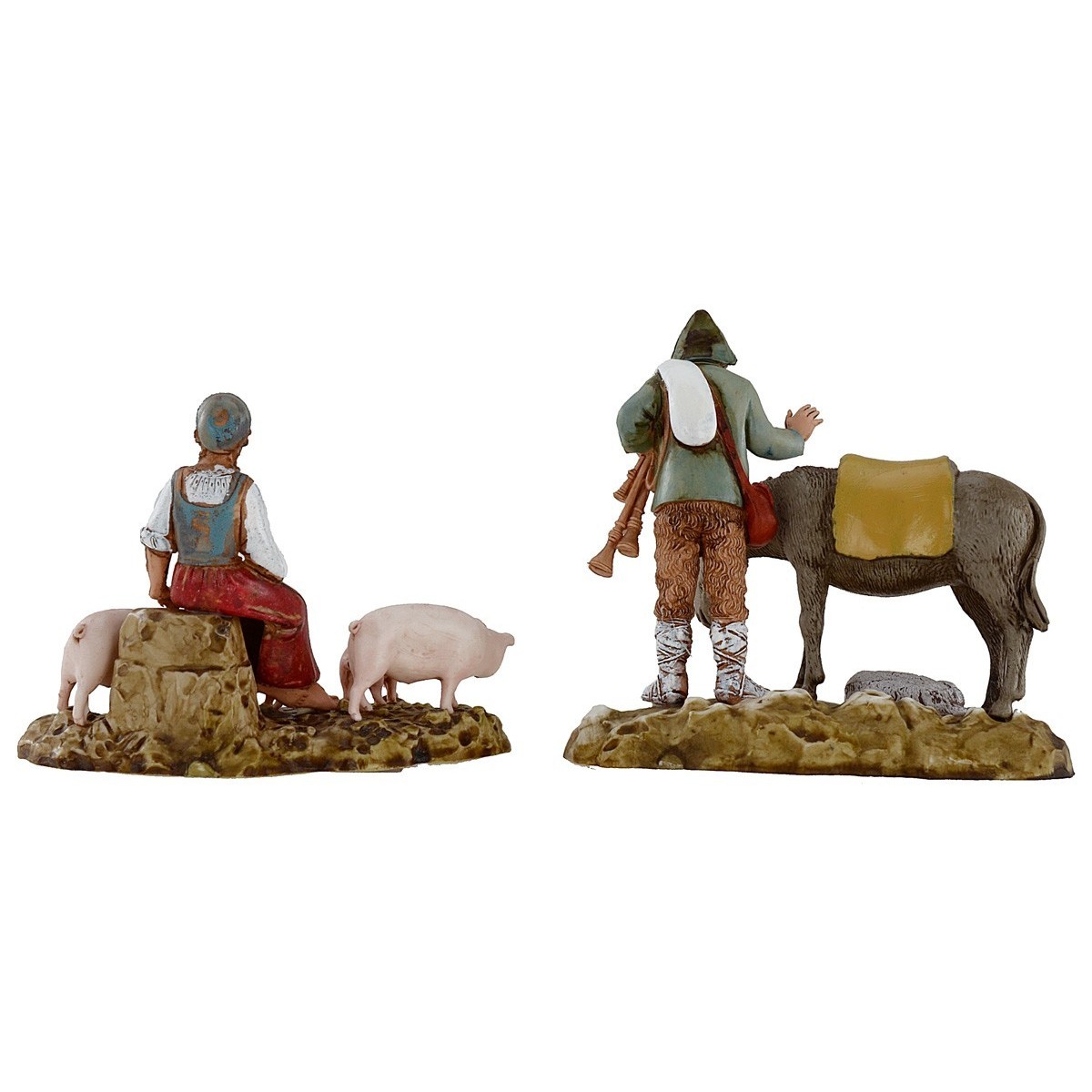 Set of 2 groups 10 cm Landi Moranduzzo series composed of: seated woman group with pigs and bagpiper group. It should be noted that the aforementioned series actually measures around 8.5-9 cm in height. The statues of this brand are characterized by the care in the expressiveness of the faces and of every single detail, in fact all the series signed by Landi are produced and painted by hand in Italy.
