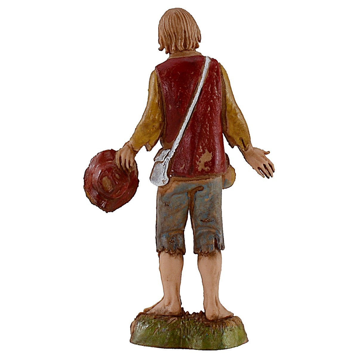 Mendicante con cappello serie 10 cm Landi Moranduzzo. Si precisa che la sopracitata serie misura realmente circa 8,5-9 cm di altezza. Le statue di questo marchio si caratterizzano per la cura nell'espressività dei volti e di ogni singolo dettaglio, infatti tutte le serie firmate Landi sono prodotte e dipinte a mano in Italia.