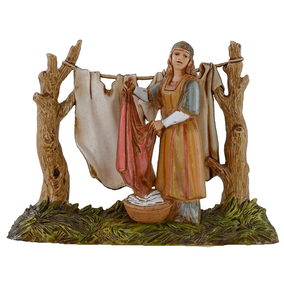 Oriental peasant woman hanging out the laundry series 10 cm Landi Moranduzzo. It should be noted that the aforementioned series actually measures about 8.5-9 cm in height. The statues of this brand are characterized by the care in the expressiveness of the faces and of every single detail, in fact all the series signed by Landi are produced and painted by hand in Italy.