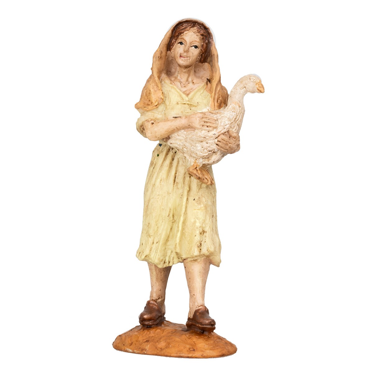 The figure represents an Arab woman holding a goose in her arms and is hand-painted with attention to the smallest details, from the folds of the dress to the facial expressions, to the realistic rendering of the animal.
