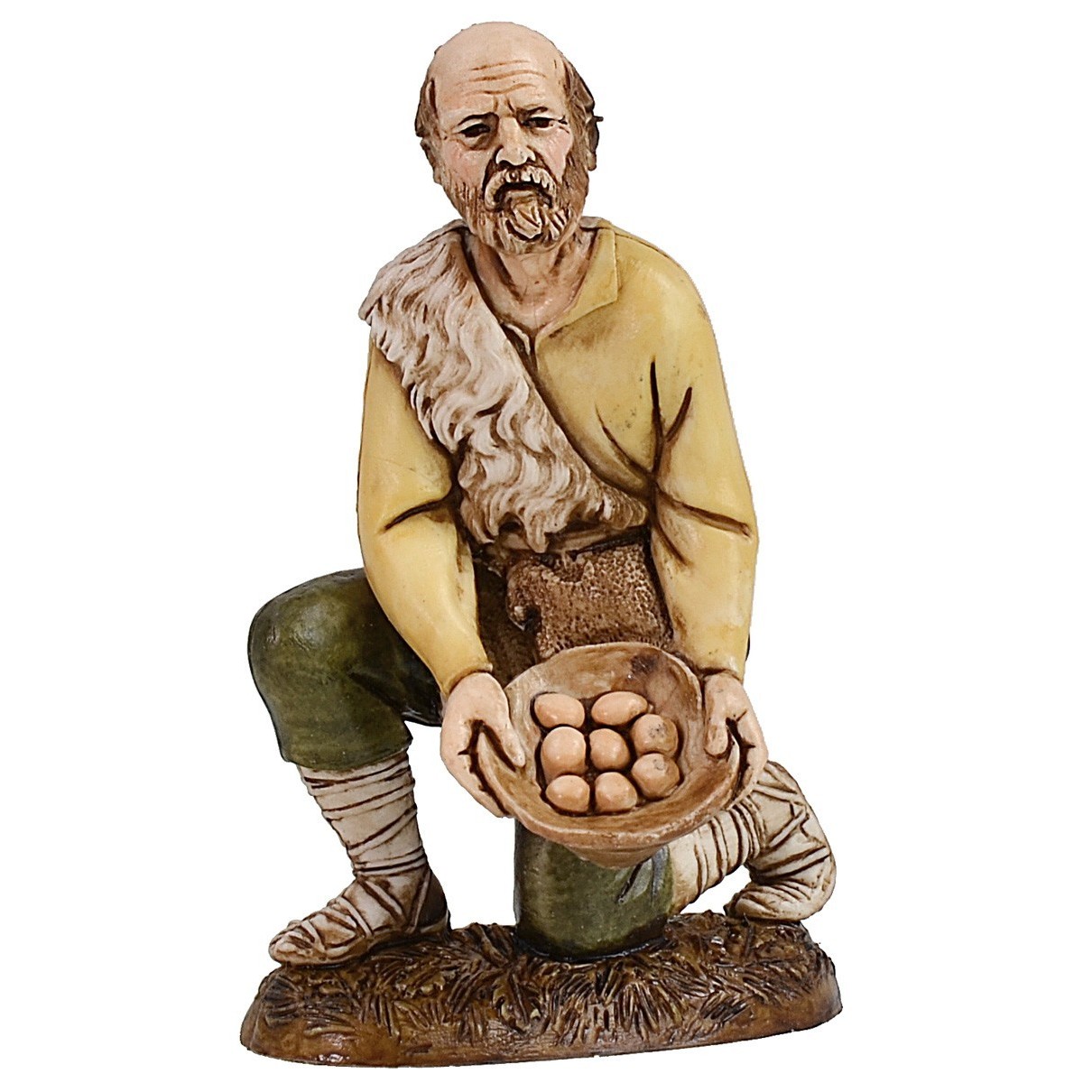 Six statues for crib 12 cm Landi Moranduzzo, the aforementioned series is characterized by statues with well-finished details, with expressive faces and the use of very realistic colours. The set consists of a seated, amazed shepherd, laundress, sleeper, woman with amphora and shepherd with gifts.