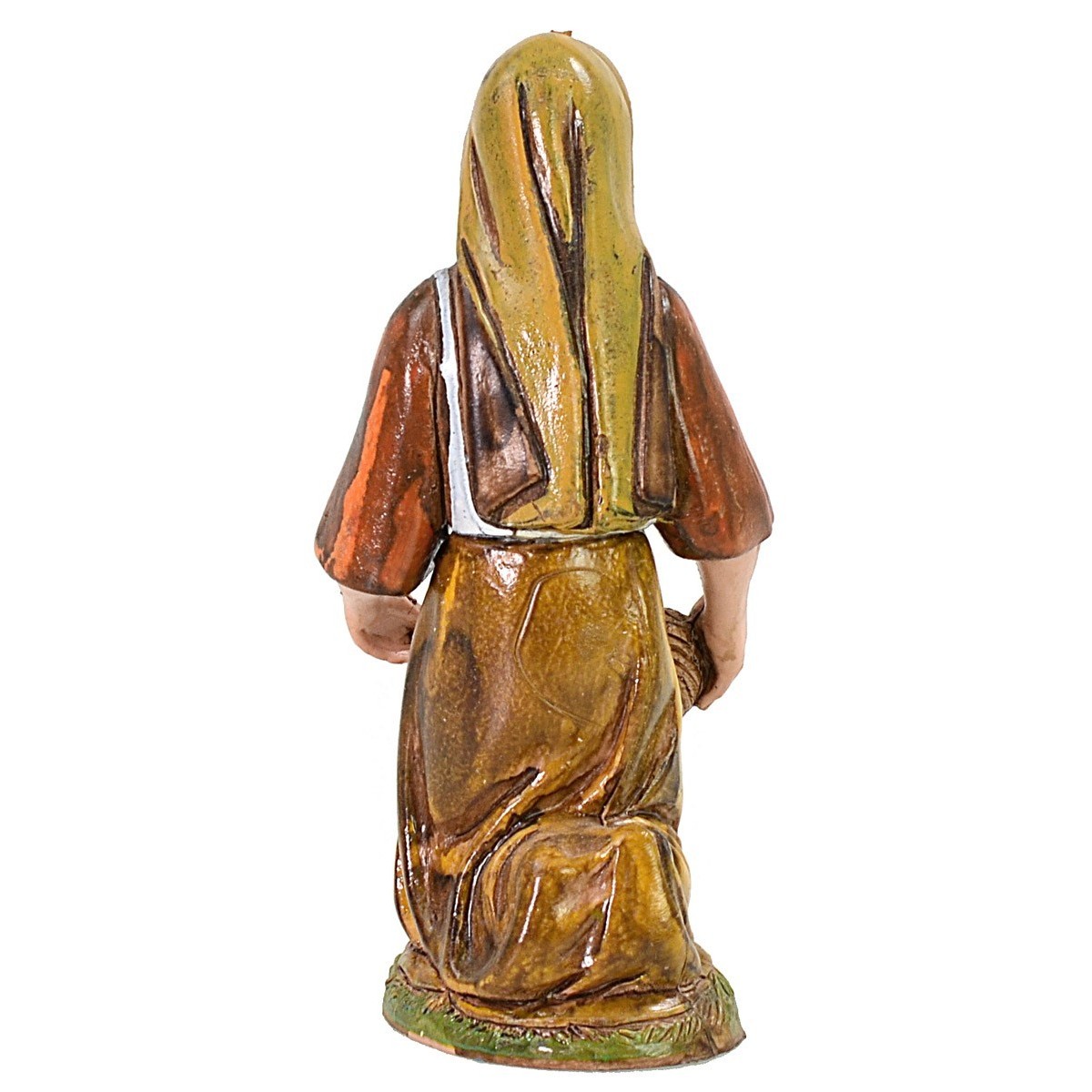 Kneeling woman with basket of clothes 12 cm Landi Moranduzzo in various colours, the aforementioned series is characterized by statues with well-finished details, with expressive faces and the use of very realistic colours.