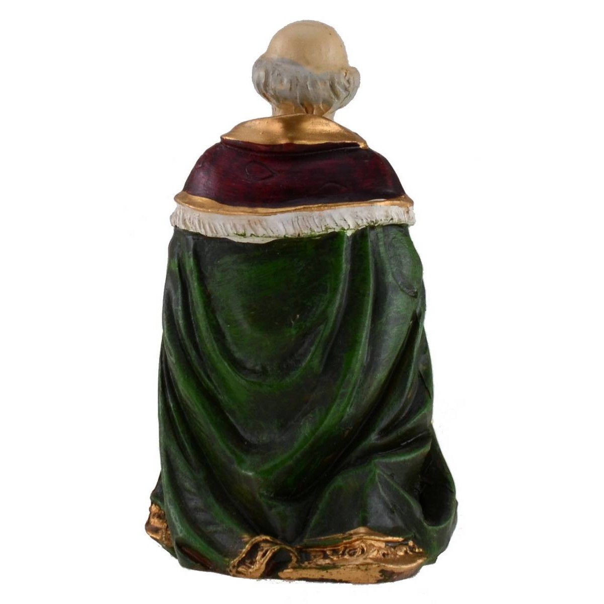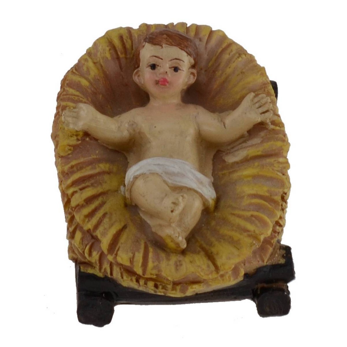 Set di 11 pezzi composta da: San Giuseppe, Maria, Gesù nella culla, bue, asino, tre Re Magi, angelo, pastore e pecora. Statue per presepe in resina dipinte, altezza 12 cm.