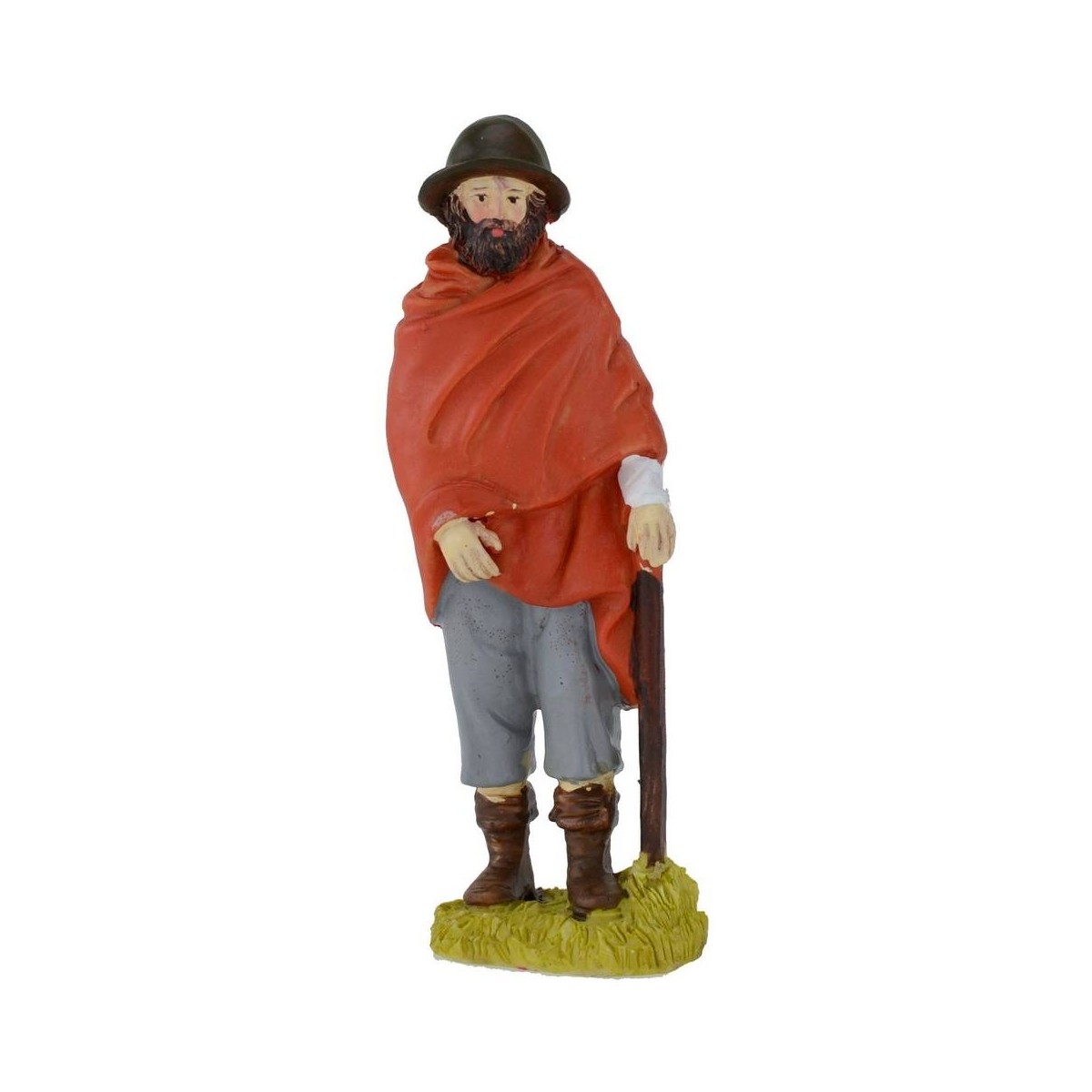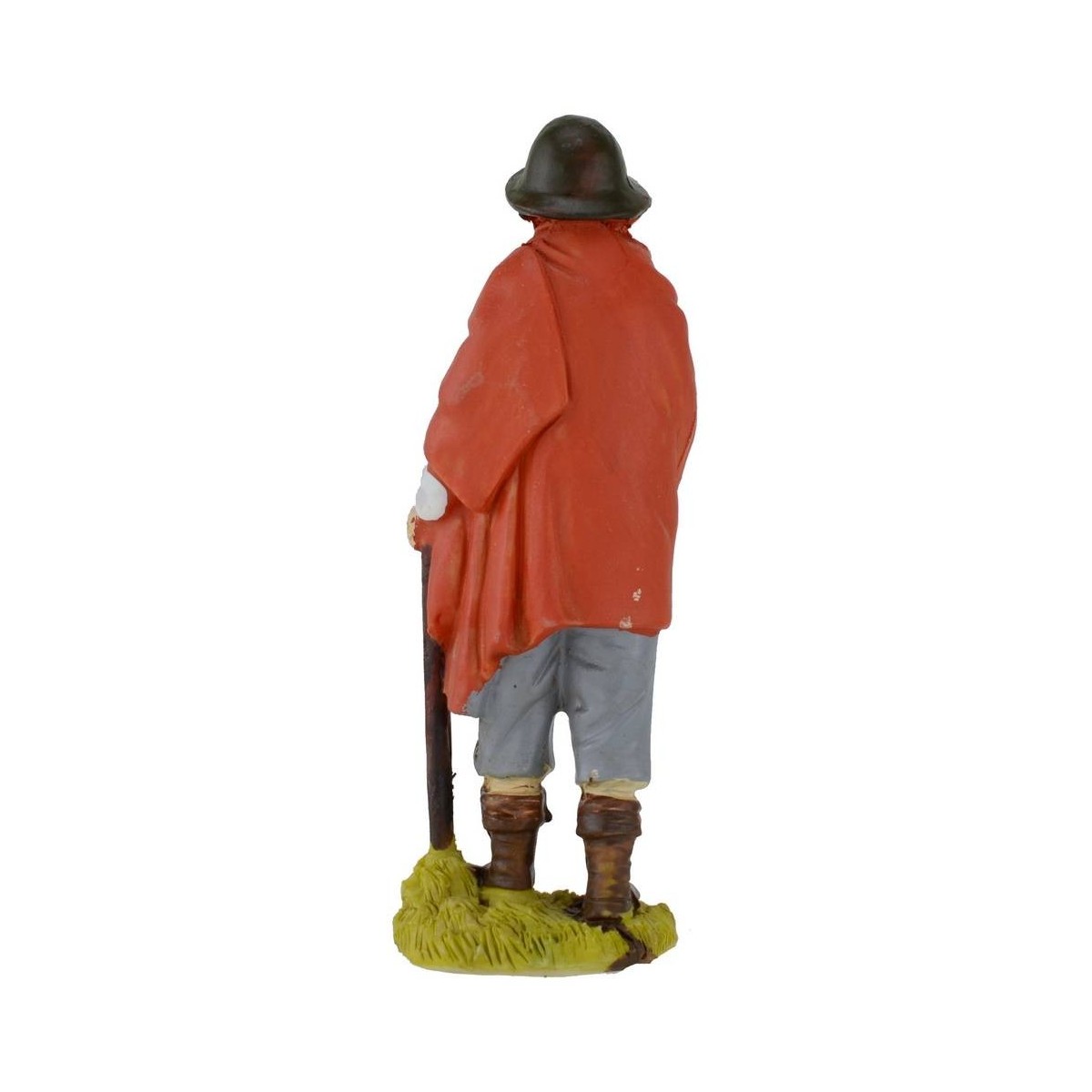 Viandante with stick, hat and mantle, height 15 cm in resin.