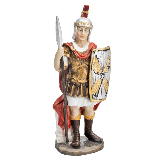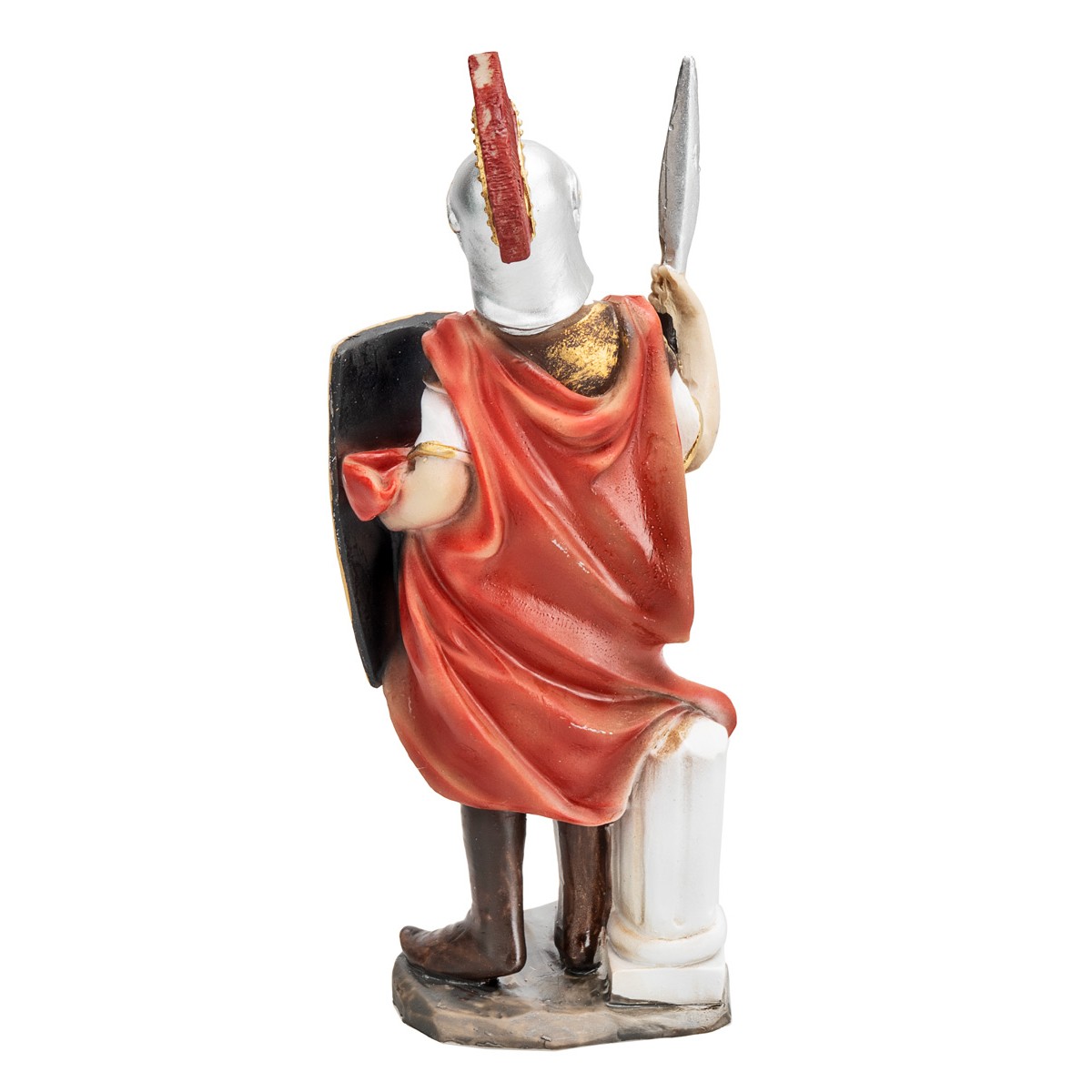 Resin statue depicting a Roman soldier with shield and spear, 15 cm high.