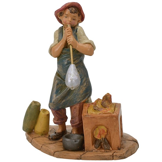 Scena composta da un artigiano che soffia il vetro serie 12 cm Fontanini dipinta a mano. Le statue del presepe tradizionale Fontanini, prodotte a mano in Italia, hanno volti espressivi e ben rifiniti nei dettagli.
