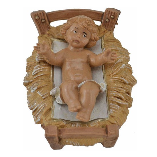 Bambinello separated from the hand painted Fontanini series 12 cradle. The statues of the traditional Fontanini nativity scene, handcrafted in Italy, have expressive faces and well-finished details.